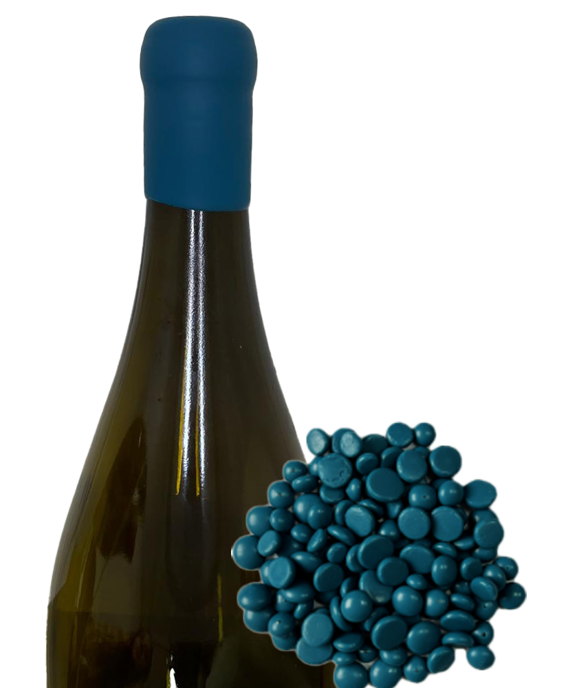Lacre sintètic d’alta qualitat de color turquesa, especialment dissenyat per al segellat d’ampolles de vi, cava, licors o productes gurmet.