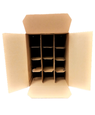 Caja blanca automontable para 6 botellas de cava de 0.75 cl en posición vertical con colmena incorporada