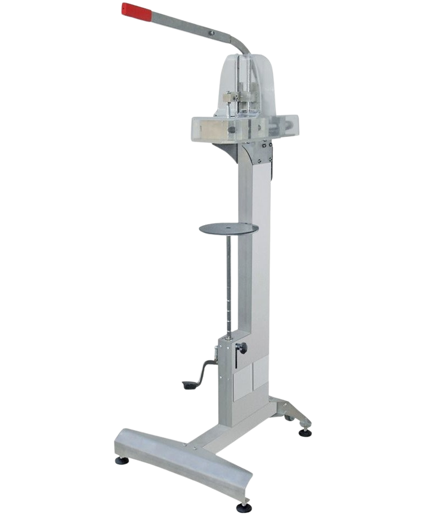 Taponadora manual reforzada Zeus para vino y espumoso, robusta y precisa, apta para botellas grandes, con cabezales de acero templado.