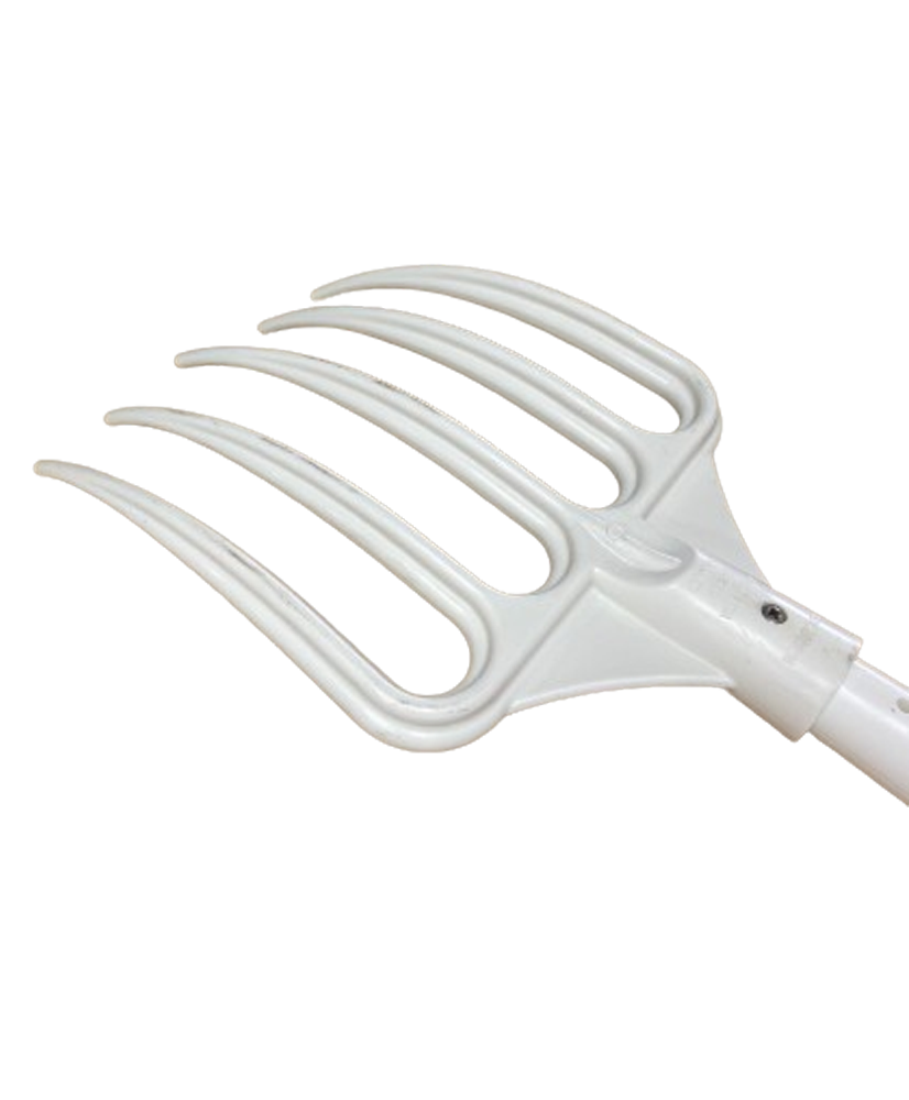 Référence: 9804401Fourche hygiénique pour vider produits fraîches de grandes conteneurs, par example pendant la vendange et pour l'éllaboration du vin. Fourni avec un manche renforcé avec un tube intérieur d'aluminium. son échellonement en ses des ponits pour le saisir aide à la prévention des blessures de dos. Son assemblage a été conçu pour augmenter la rensitence pour les travails les plus lourdes.