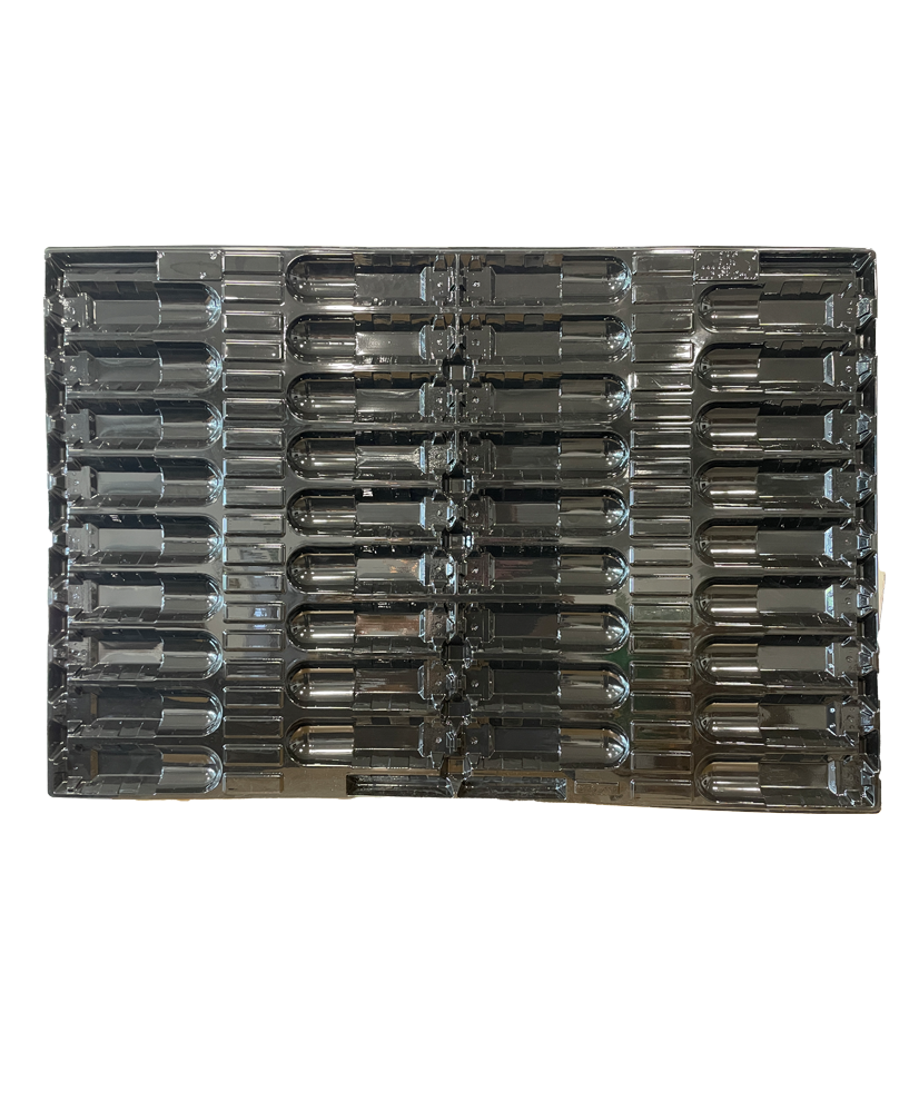Il peut être empilé jusqu'à une hauteur de 20 plateaux par palette avec une hauteur totale de 2 palettes.