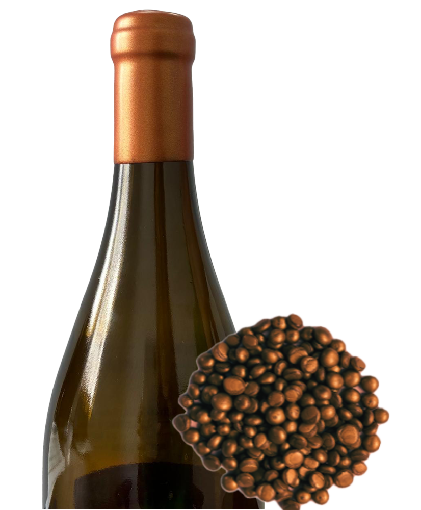 Lacre sintético de alta qualidade na cor cobre, especialmente desenvolvido para o selamento de garrafas de vinho, espumante, destilados ou produtos gourmet.