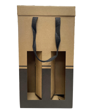 Maleta con ventana para 2 botellas de vino o espumoso en cartón resistente, ideal para presentación y transporte seguro de botellas.